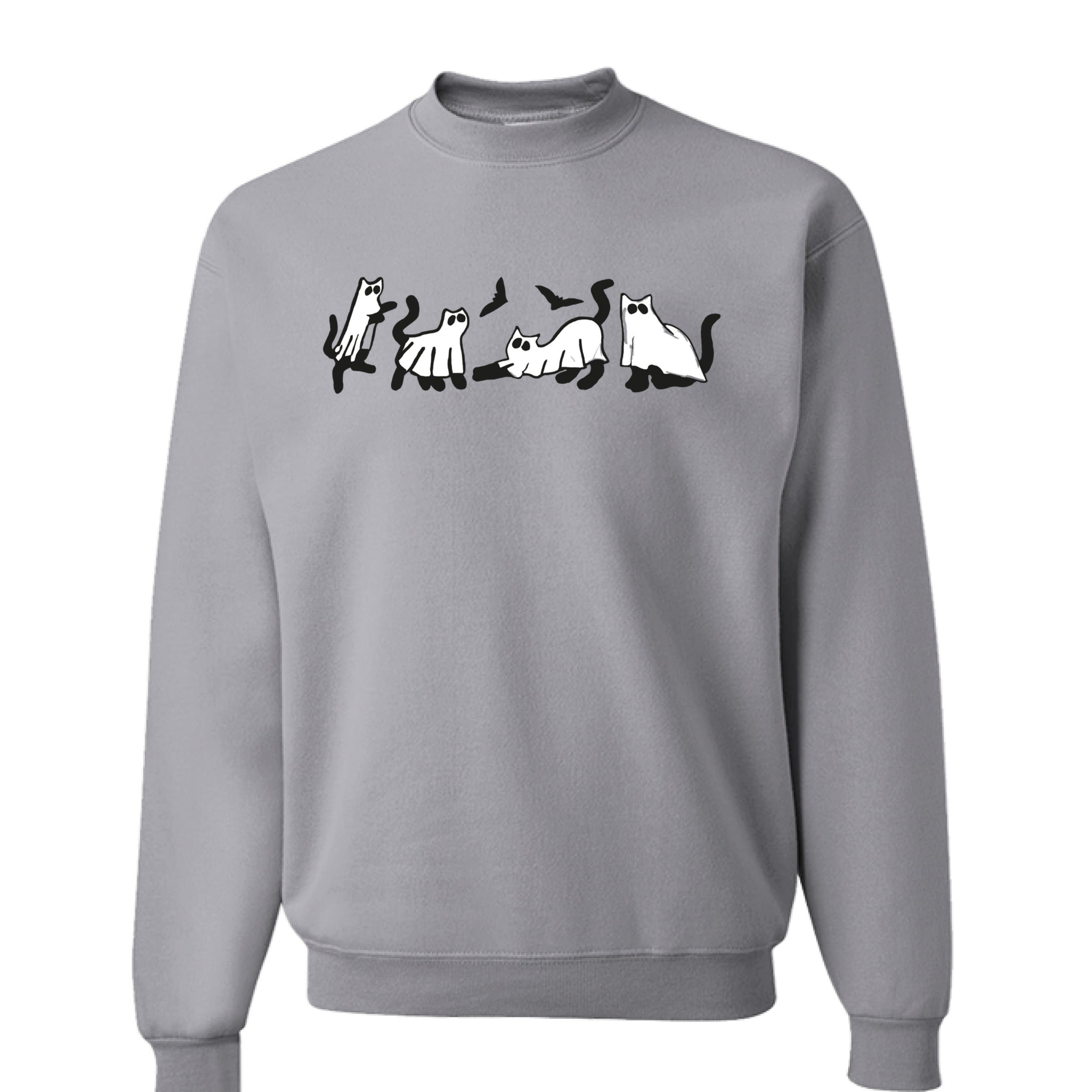 Get in the spooky season with our Ghost Cat Comfort Colors Sweatshirt! Featuring black cats dressed as ghosts, you can't go wrong during the Halloween season with this sweatshirt!