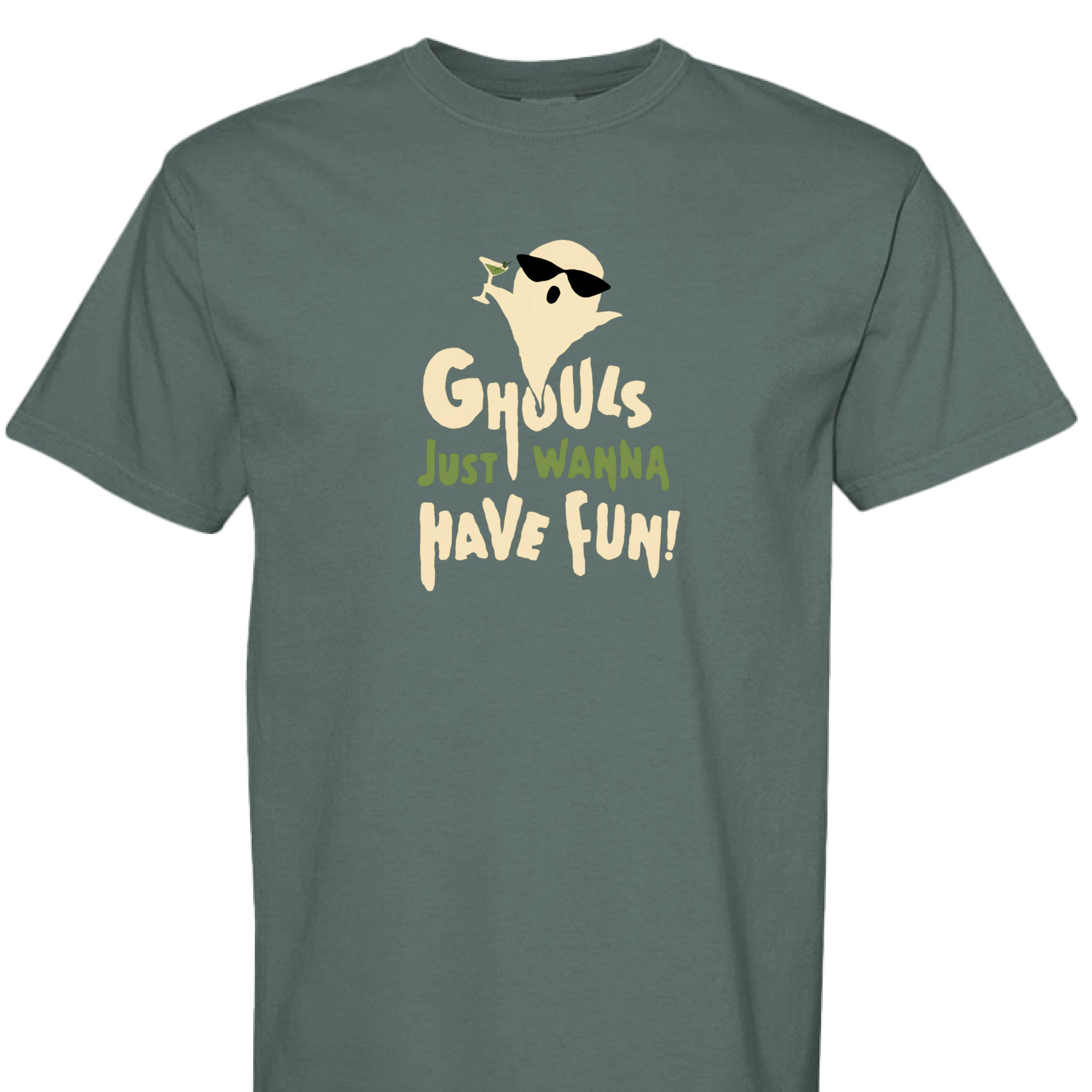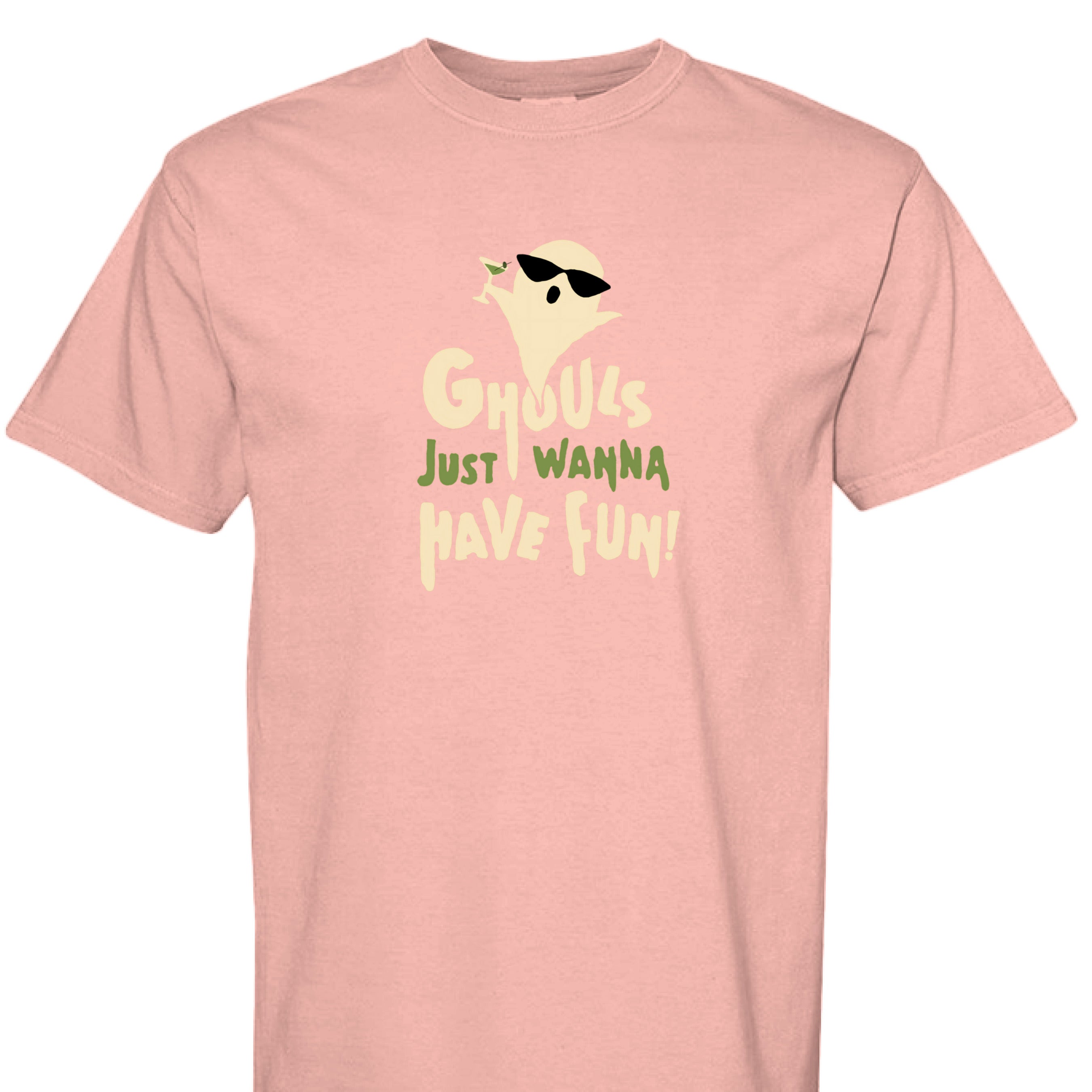 Celebrate spooky season in style with the Ghouls Just Wanna Have Fun T-Shirt. Featuring a playful ghost holding a martini, this Halloween tee brings humor and charm to your festive wardrobe. It's the perfect way to show off your fun-loving spirit while staying comfortable at any Halloween party or casual outing. Embrace the holiday vibes and let your ghoulish side shine!